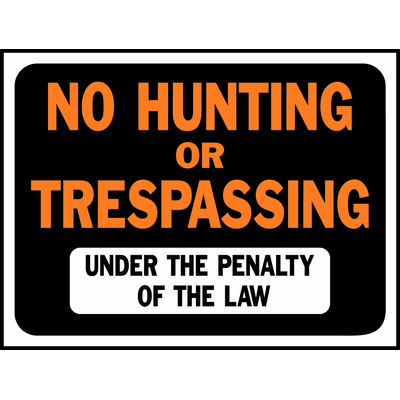 Sign No Hunting/Tresp Plastic 9"X12 9 x 12 Plastic