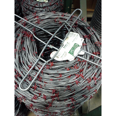 Heavy 12.5 ga LC CL1 barbwire, 5" barb spacing, with red barbs