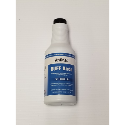 AniMed's easy-to-feed supplement contains a source of guaranteed live (viable) naturally occurring micro-encapsulated probiotic microorganisms and yeast cultures. BUFF Birds helps keep your birds in peak condition and pleasing form and helps maintain normal energy levels.