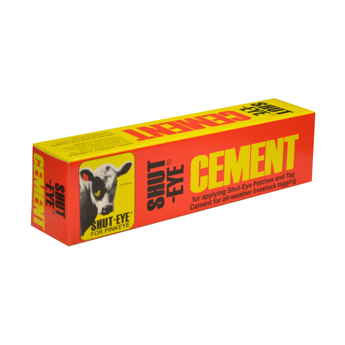 Shut-Eye Cement for use when applying Shut-Eye Patches for pinkeye and all-weather livestock tagging.