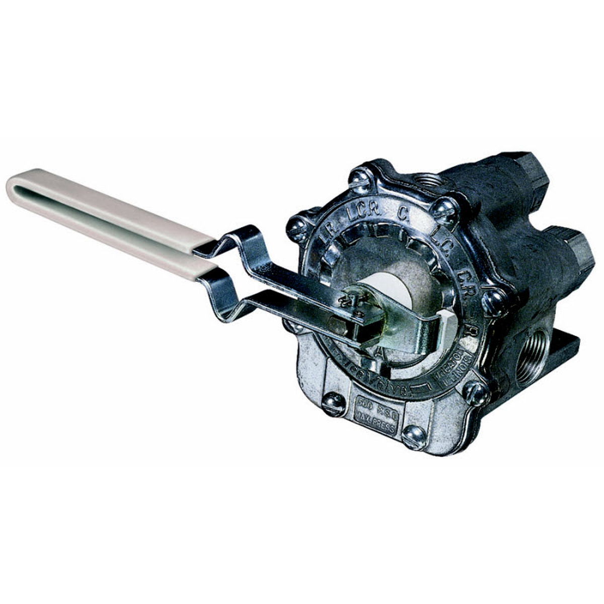 The TEEJET VALVE MANUAL SELECTOR CONTROL VALVE is used to open any of three boom section lines in any desired combination