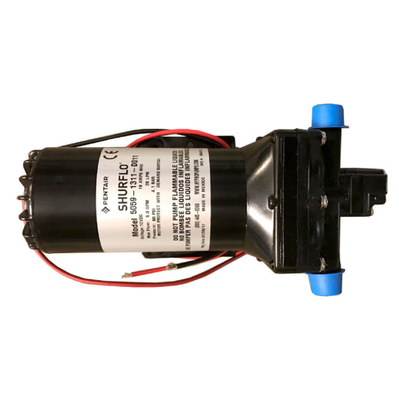 The SHURFLO 5.3 GPM DIAPHRAGM 12 VOLT PUMP 1/2" MPT PORTS with DEMAND SWITCH is a high flowing pump that reacts to outlet pressure and interrupts power at a preset shutoff. This 12Volt diaphragm pump has a max 17.0 AMP, max of 60 PSI and delivers up to 5.3 GPM. This pump is made for small to medium duty spraying and is designed to continuously spray without damaging the motor when it runs dry.
