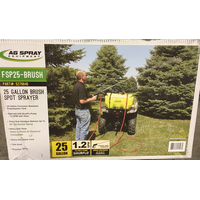 The 25 GALLON BRUSHBUSTER SPRAYER is designed to quickly apply herbicides, pesticides, fertilizers and more. This spot sprayer can be placed on the rack of an ATV, and in the back of a UTV or pickup truck. The Shurflo 12 Volt Pump is rated up to 2.2 GPM and 100 PSI. The UV resistant, molded polymer tank has a 5-inch tethered lid for easy access and is completely drainable for quick and effective clean out after spraying. The Deluxe Pistol Grip Spray Wand with brass tip can quickly adjust from straight stream to a cone pattern to meet your application needs and distributes up to 35 feet of horizontal spray, 26 feet of vertical spray and comes with 21 feet of 3/8 inch heavy duty hose that is both diesel and chemical compatible. The 25-gallon lawn and garden sprayer allows accurate and easy application of lawn care products with the versatility and efficiency needed to spray tight areas around buildings, fence lines, trees, bushes or other obstacles.
