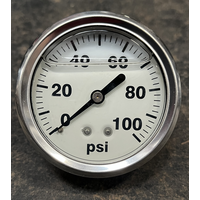 100 PSI with a 1/4 MNPT brass BACK mount connection.