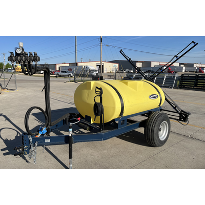 Ag Spray 500 gallon eliptical trailer sprayer with 28ft MX 17 nozzle boom.