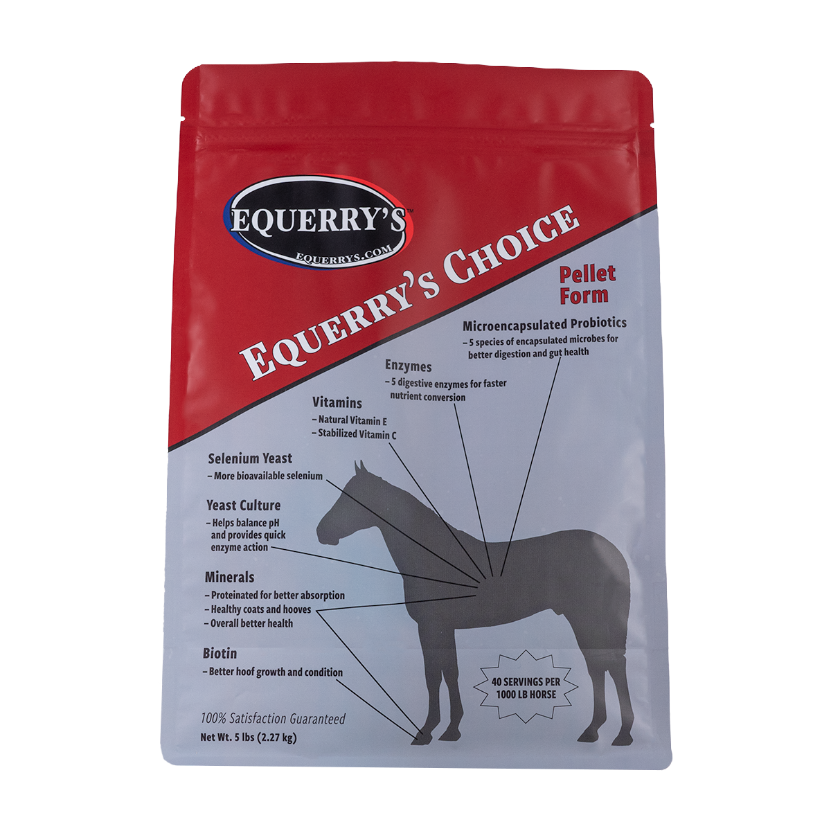 Equerry's Choice is a Microencapsulated Probiotic and Digestive Enzyme blend that includes a broad spectrum of proteinated minerals, chelated minerals and vitamins, including Organic Selenium, in a highly palatable pellet for easy feeding