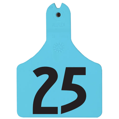 The quality, convenience and performance of Allflex tags in a one-piece design. Save time at arrival while reducing stress on workers and cattle. Redesigned self-piercing tip allows for easier ear perforation. Helps resist snagging with rotating attachment and soft plastic. Provides lasting retention in challenging conditions. Short neck is better for calf tagging and provides greater variation between cow and calf options. Maintains the same retention standards as the long neck version in a more compact design. Promotes fast healing and tip design makes tag loading easy. Tag measures 2.4"W x 3.3"H.