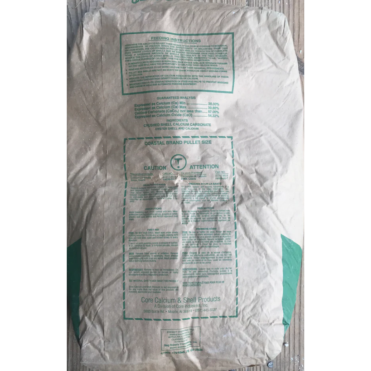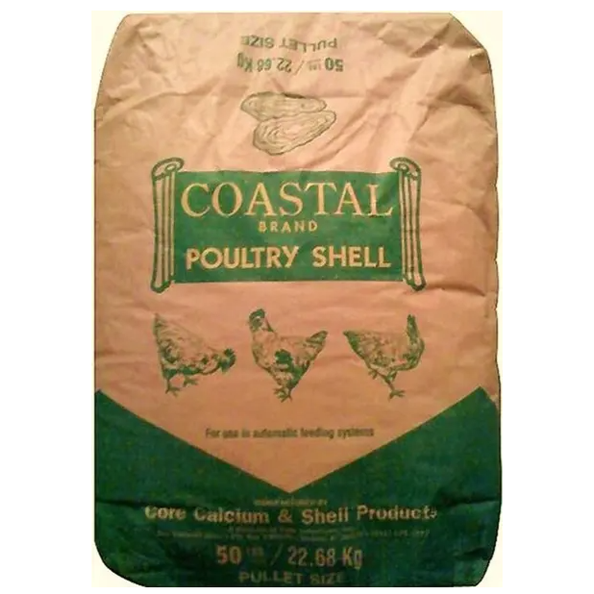Coastal Brand Poultry Shell is a feed grade calcium carbonate for layers, breeders, turkeys, chicks, swine and cattle. Coastal Brand Shell is an excellent source of Calcium and stays in suspension throughout the feed line making calcium available to all birds. This very high and consistent form of calcium is available to the bird many hours after feeding to help protect the medullary bone and provide stronger bones.