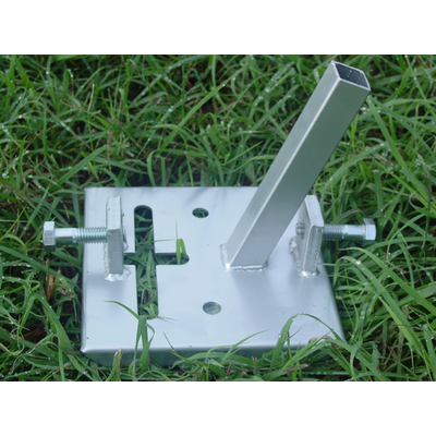 The Non-Typical foot design is completely unique! The feet are designed to accept a T-Post through the center of the foot. The feet are large 7" square steel plates. Each foot has a large nut welded to it and a " bolt that when tightened secures the feeder to the T-Post. This will not only protect the feeder but keep it level and immobile. Feet will receive any pipe or tubing with an I.D. of 1.25" or larger. The Square tubing on the Deluxe feet is 7/8" square tubing.