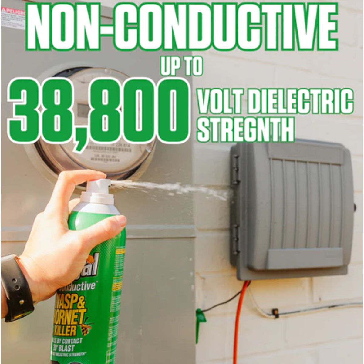 This 15oz wasp & hornet killer is specifically designed for outdoor use and is safe for application on electrical equipment up to 38,800 volts. With its ultra-powerful spray, it can reach nests over 20 feet above ground, providing optimal performance.