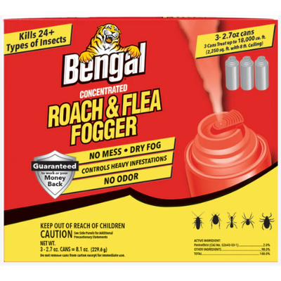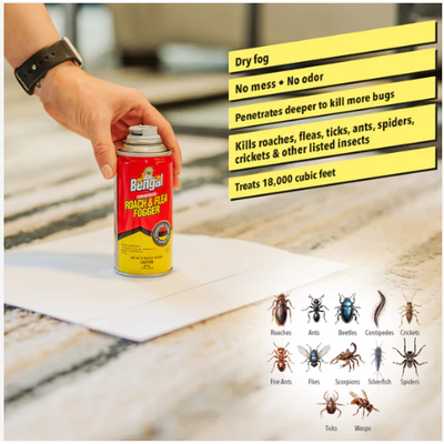 This pack includes three concentrated 2.7-ounce aerosol foggers, each capable of treating up to 6,000 cubic feet. Designed to eliminate over 24 types of insects - including roaches, fleas, ticks, ants, crickets, and spiders.