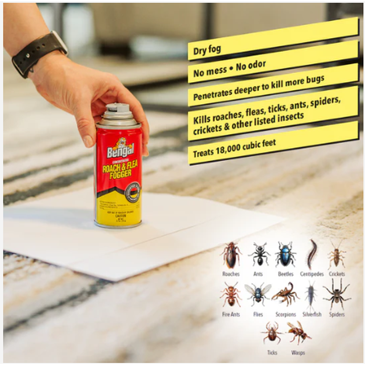 The dry, odorless fog leaves no messy residue, making it ideal for use in any room. With a 2% concentration of Permethrin, a highly effective insecticide, this product ensures powerful insect control.