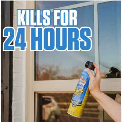 Flying insects that come into contact with the spray in the air or on treated surfaces will quickly die. It kills mosquitoes that may carry West Nile and Zika viruses. This product can treat overhangs and other protected surfaces to prevent spiders from building webs for up to 30 days. It won't damage any plants, trees, bushes, windows, porches, light fixtures or finished surfaces of homes. This product contains a high 2% concentration of Permethrin, an insecticide that is a powerful killing agent on insects and 0.05% concentration of ETOC, a state-of-the-art insect knockdown agent.