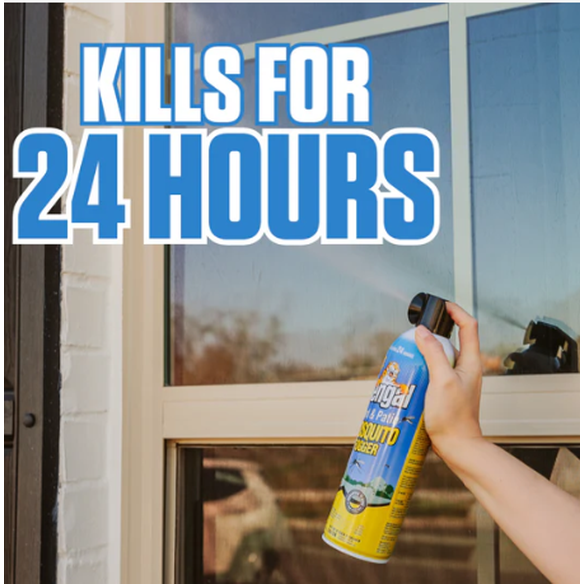 Keep your surroundings free of mosquitoes and outdoor bugs with the Bengal Yard and Patio Fogger. This 17-ounce aerosol product provides a quick knockdown of mosquitoes, ants, flies, gnats, spiders, scorpions, and moths. It kills for a 24-hour period including insects that land on the treated surface.