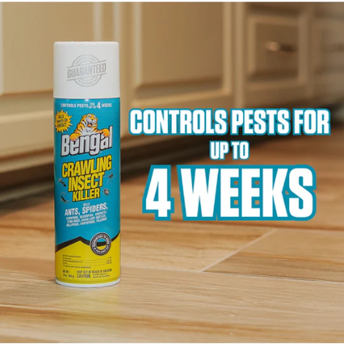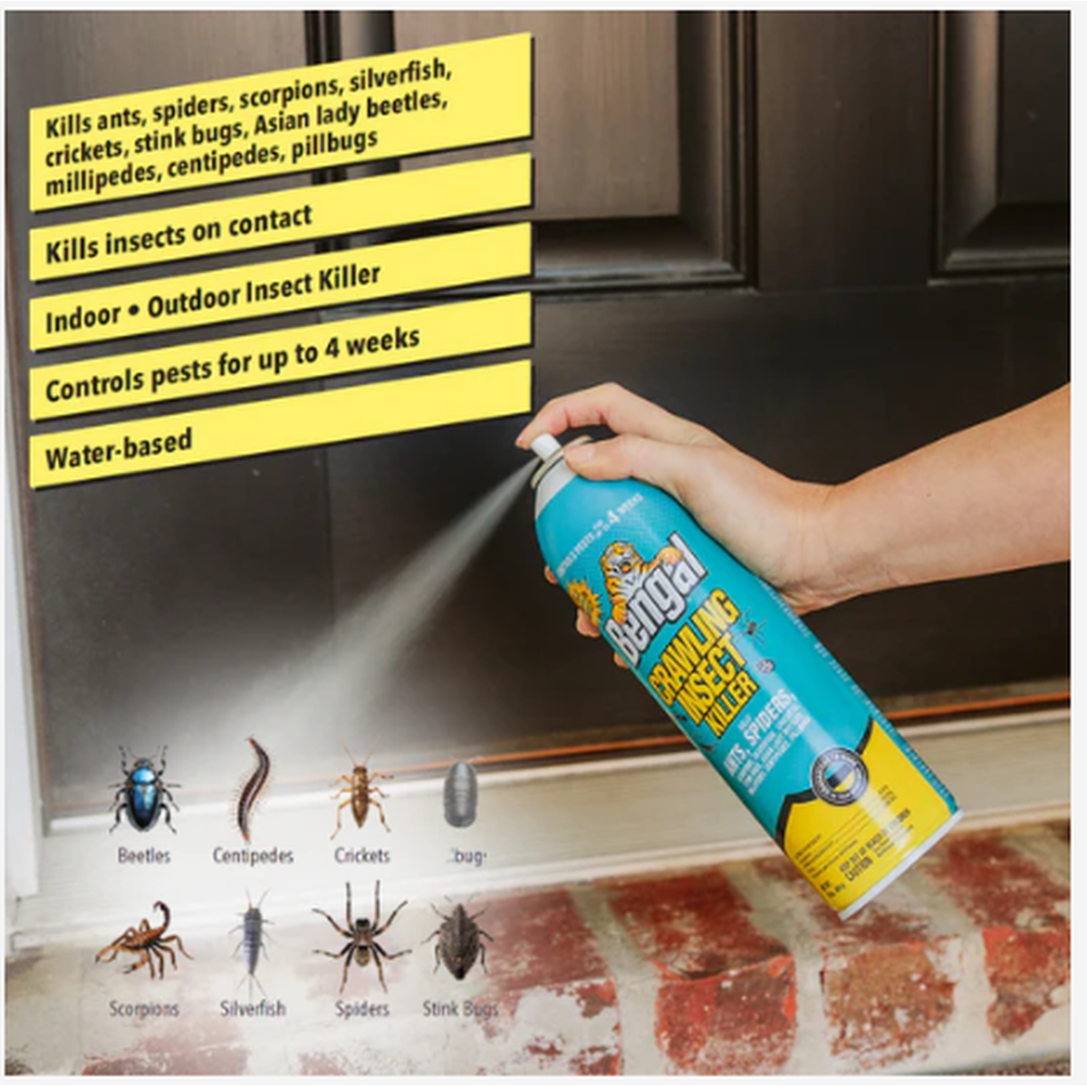 This 16-ounce aerosol spray effectively eliminates ants, spiders, scorpions, silverfish, crickets, stink bugs, Asian lady beetles, millipedes, centipedes, and other crawling insects, both visible and hidden. Suitable for both indoor and outdoor use, it provides up to 4 weeks of pest control.