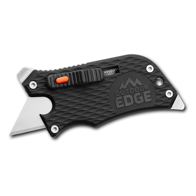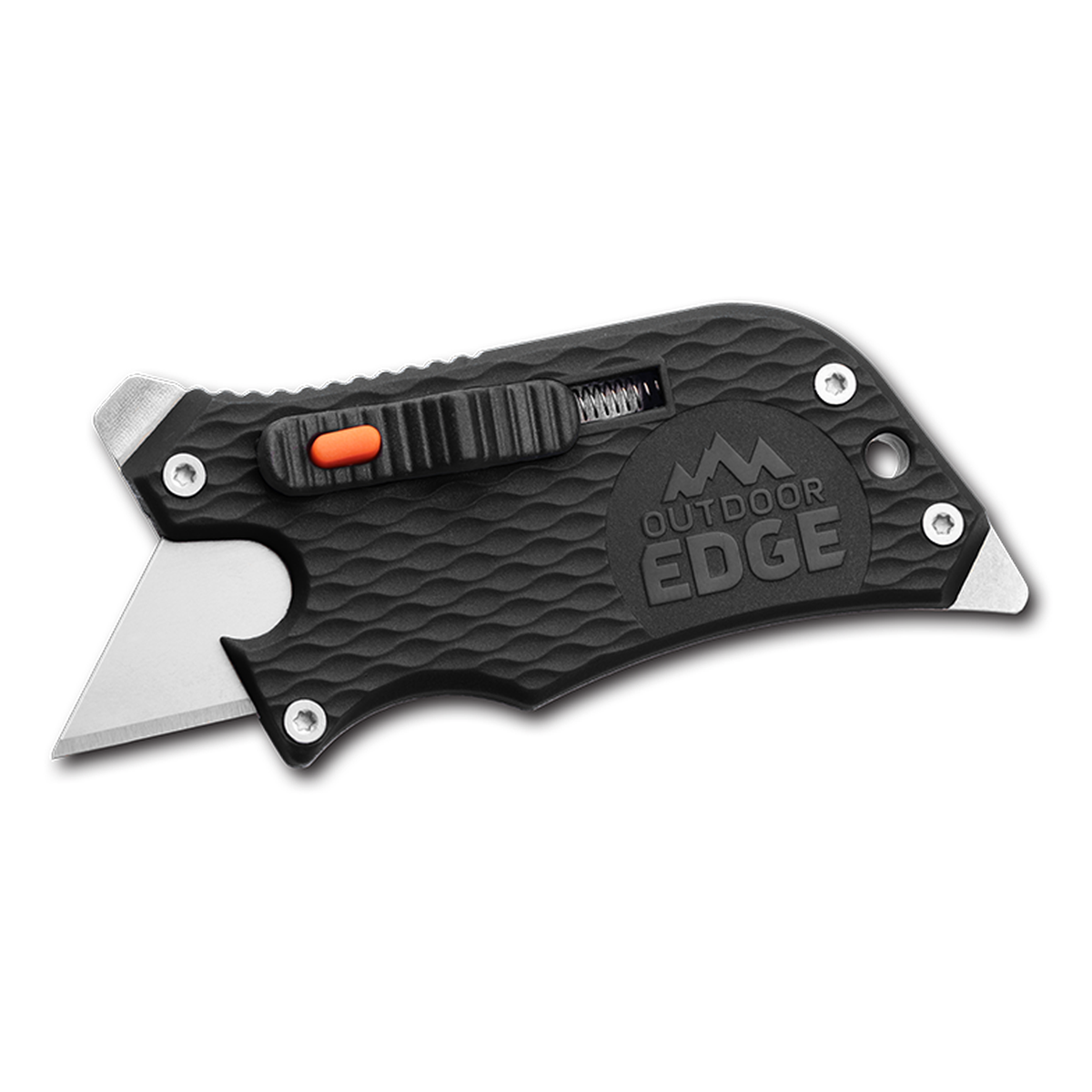 The slide opening blade locks securely and springs back into the handle automatically with the push of a button