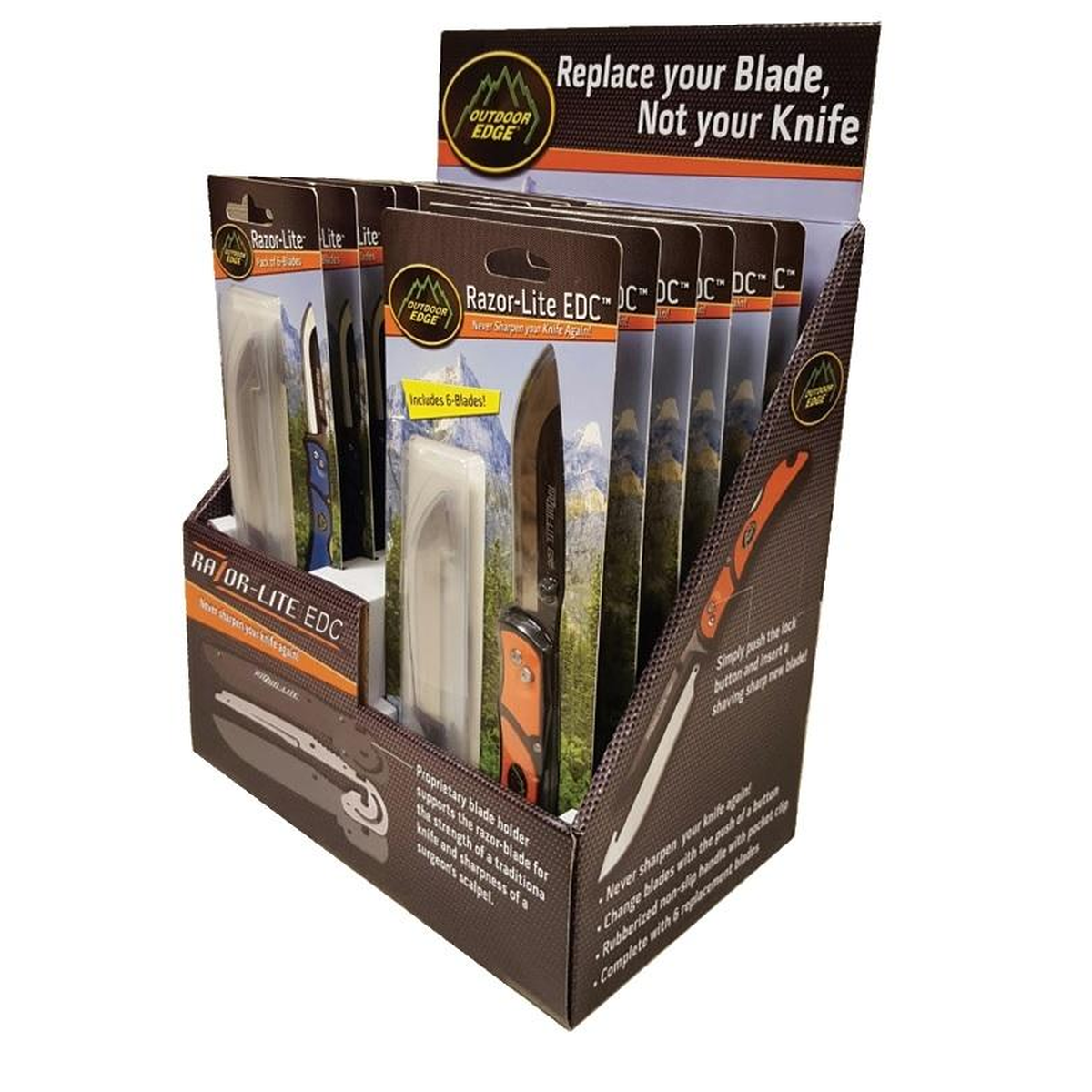 Display contains 9 Razorlite knives and 4 replacement blade packs