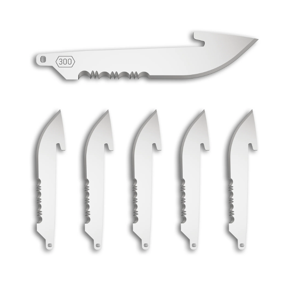 Set of six 3.0" drop-point replacement blades. Perfect for hunting, work and everyday carry.