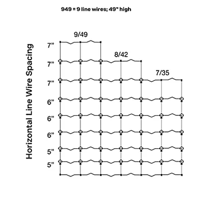 330ft Rolls provide longer pulls, with fewer splices. fixed knot design provides vertical and horizontal strength, far superior to tradional Field Fences