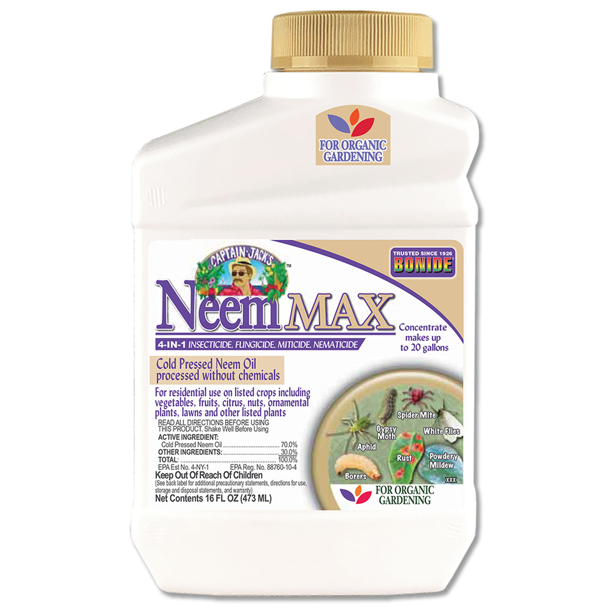 Use the power of Neem. Neem Max is an organic plant-based, botanical product that contains the full spectrum of bioactive compounds that stops the insect lifecycle. This 4-in-1 product is a Fungicide, Insecticide, Miticide & Nematicide. Apply as a spray or as a drench to protect your plants from insects and diseases