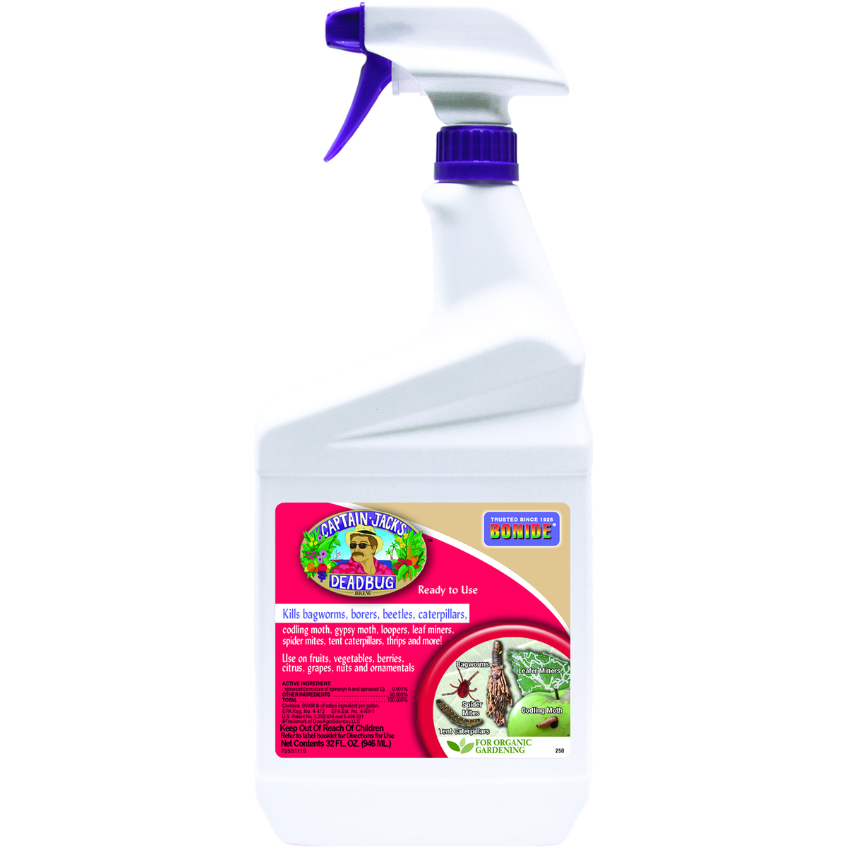 Captain Jack's Deadbug Brew contains Spinosad (spin-OH-sid), a product first isolated from a naturally occurring soil dwelling bacterium that was collected on a Caribbean island from an abandoned rum distillery.