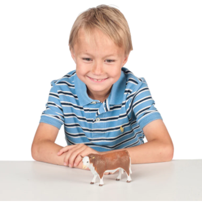 Our 1:20 scale hand-painted Hereford Bull is perfect for pretend farm and ranch play! Build your own herd of Hereford cattle or mix and match them with our other breeds.
