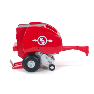 Our Red Round Baler includes 1 of our patented hay bales with holes. This 1:20 scale Round Baler can be pulled with our Red Tractor with the peg-and-hole hitch. (sold separately) The hay bale with holes will fit inside of the Rounds Baler's hay compartment and can be rolled out, just like a real baler!