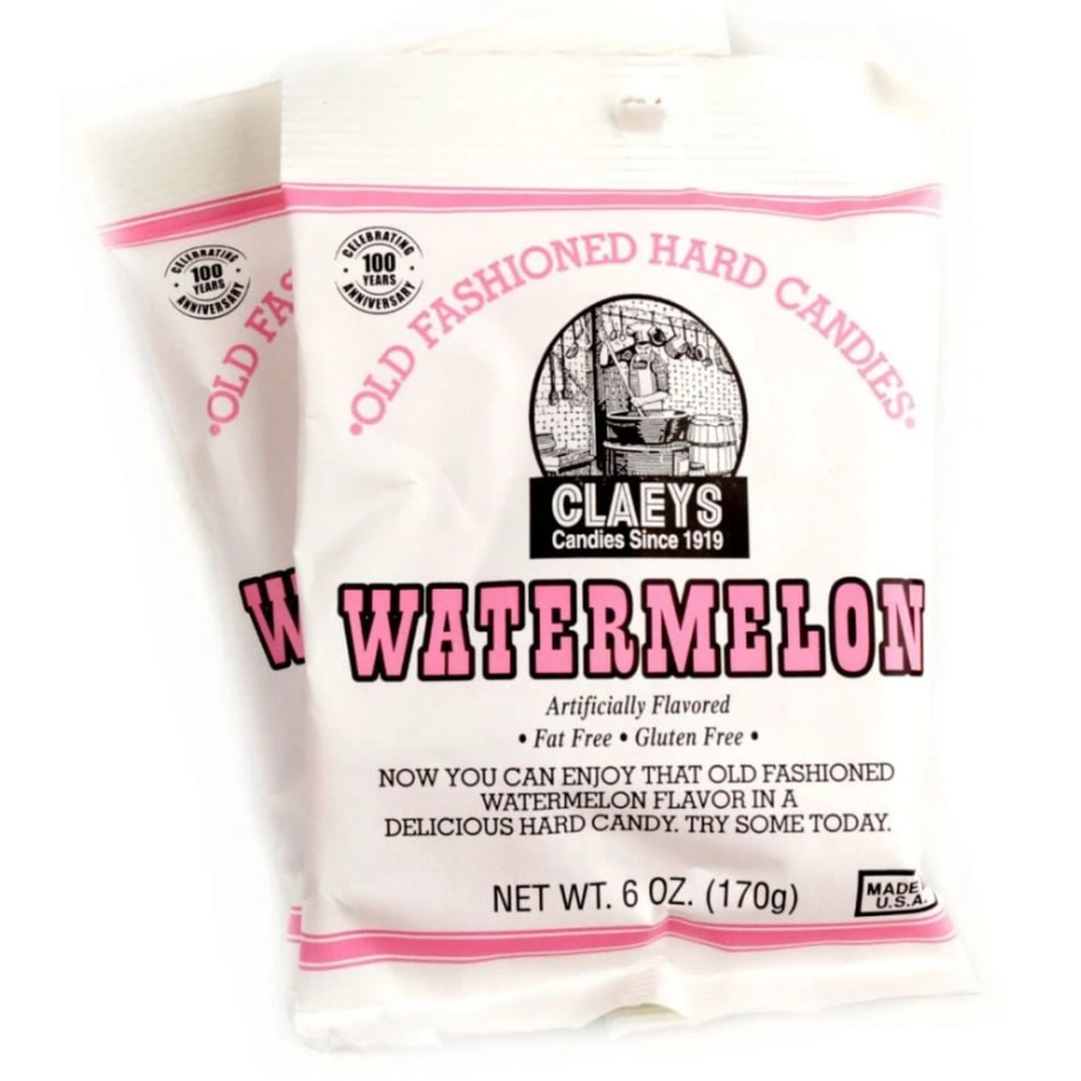 Claey's Hard Candy Drops Watermelon 6oz Bag. Like the old fashioned hard candies? Enjoy Claeys Old Fashioned Hard Candies full of Watermelon flavor and in an old fashioned bag.