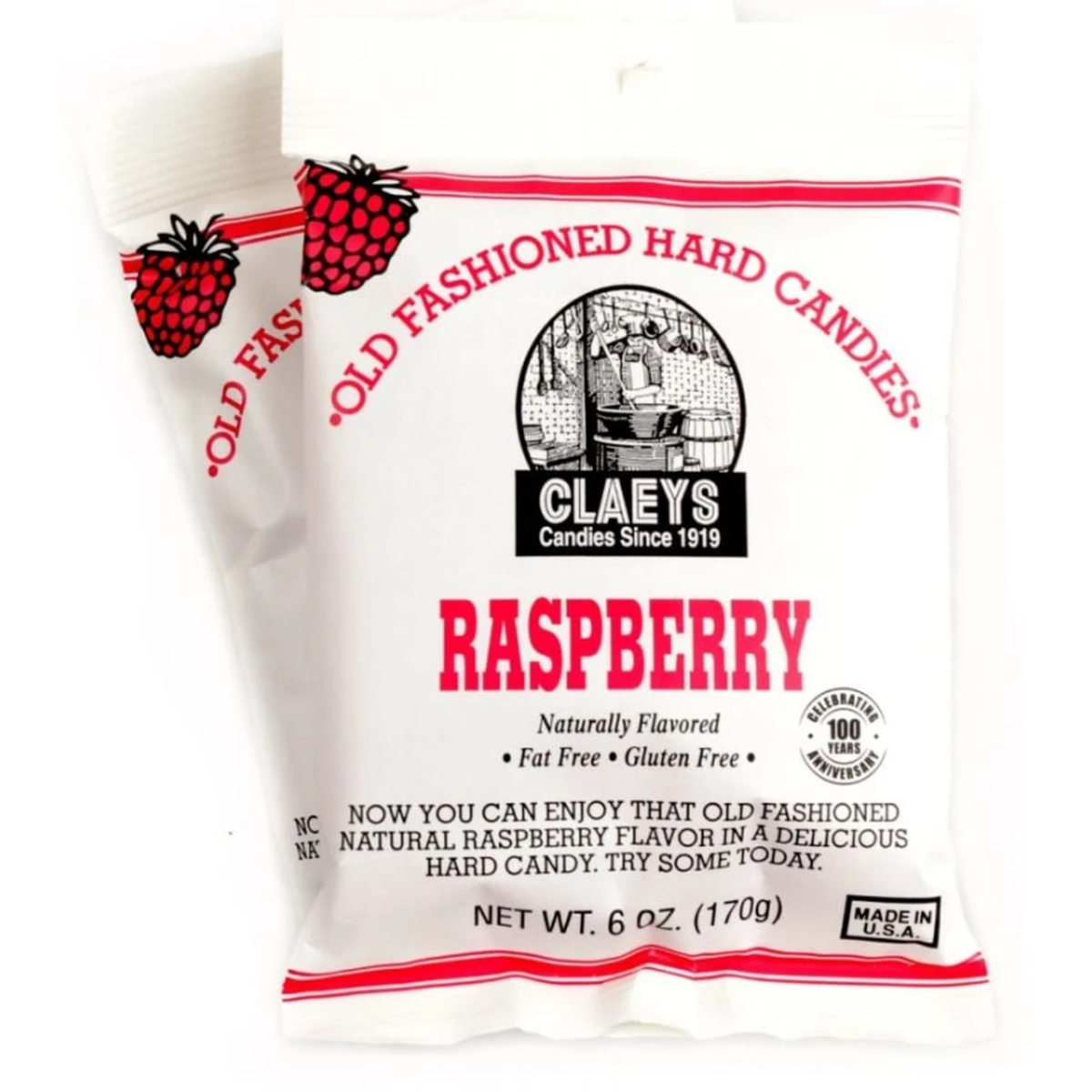 Claeys Hard Candy Drops Raspberry 6oz Bag. Old Fashioned Hard Candy Full of Raspberry flavor.