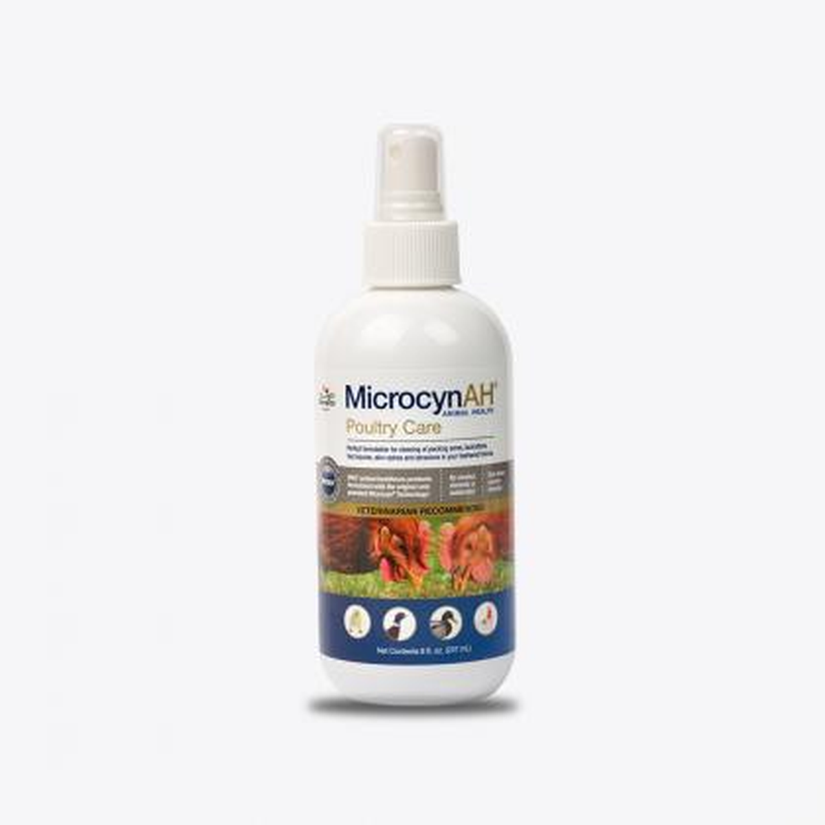 Microcyn Poultry Care has the perfect formulation for cleaning of pecking sores, lacerations, foot injuries, skin rashes, and abrasions in your feathered friends. This easy-to-use poultry care is the only animal healthcare product formulated with the original and patented Microcyn Technology.