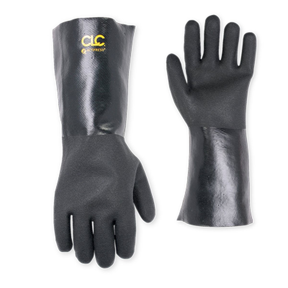 Superior quality, double-dipped PVC gloves with a gauntlet cuff, flecked finish, and Actifresh cotton flannel liner.