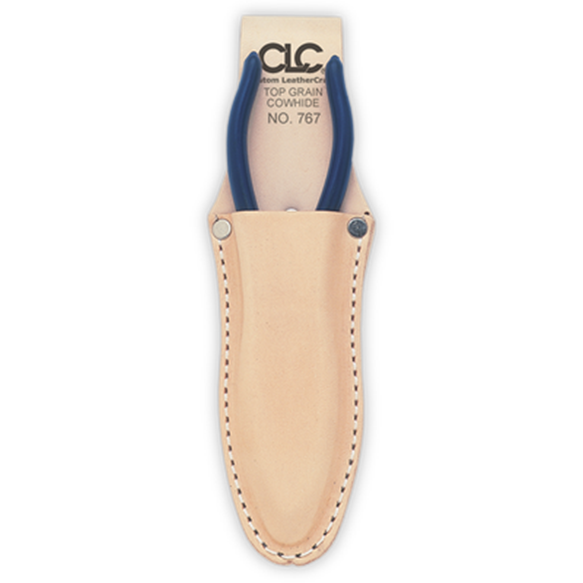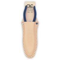 Deluxe quality tool holder for pliers, snips, or pruning shears is made of top grain leather with heavy-duty stitching, and easily holds tools up to 10" long.