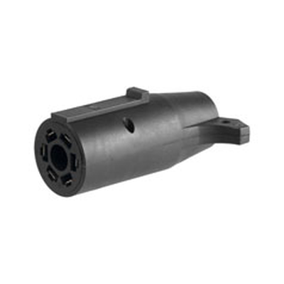 Adapts 7 way RV blade to 6 way round, (center pin auxiliary power)