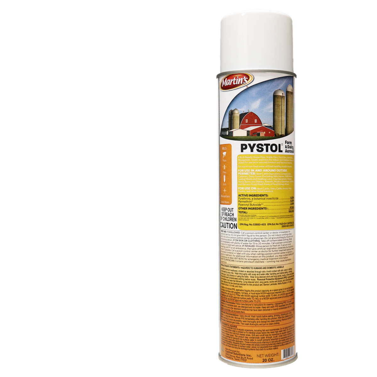 Pystol is formulated with two active ingredients and a synergist to provide a quick knockdown of flying insects and residual activity that lasts for hours.