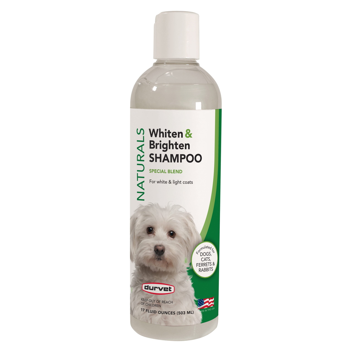 The finest ingredients found in nature will enhance white and light coats without stripping natural oils. No bluing or bleach is used. Use as often as necessary.