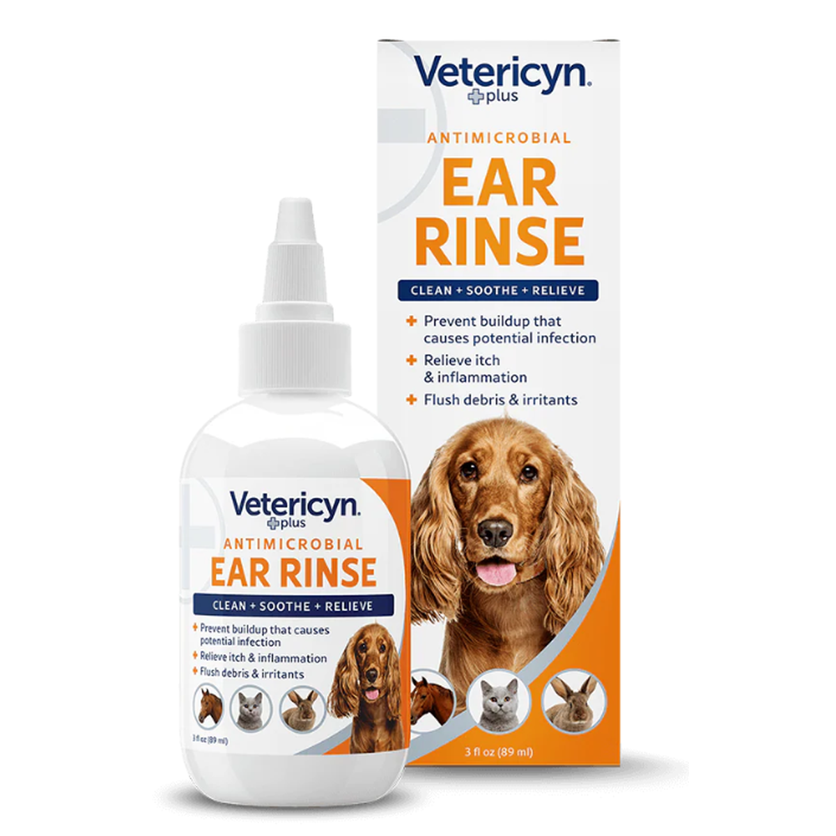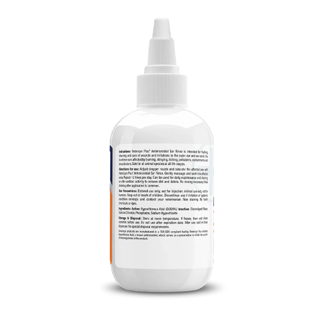 Keep your pet's ears clean with Vetericyn Plus Antimicrobial Ear Rinse, a gentle, non-toxic formula powered by a hypochlorous technology that safely flushes out debris, pollutants, and buildup without the need for antibiotics or steroids. Ideal for dogs, cats, and all animals, this easy-to-use rinse can relieve itching, irritation, and bad odors while reducing the risk of infections. It is perfect for routine maintenance after outdoor adventures or to soothe allergy-related discomfort.