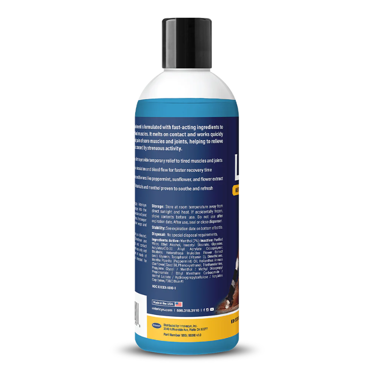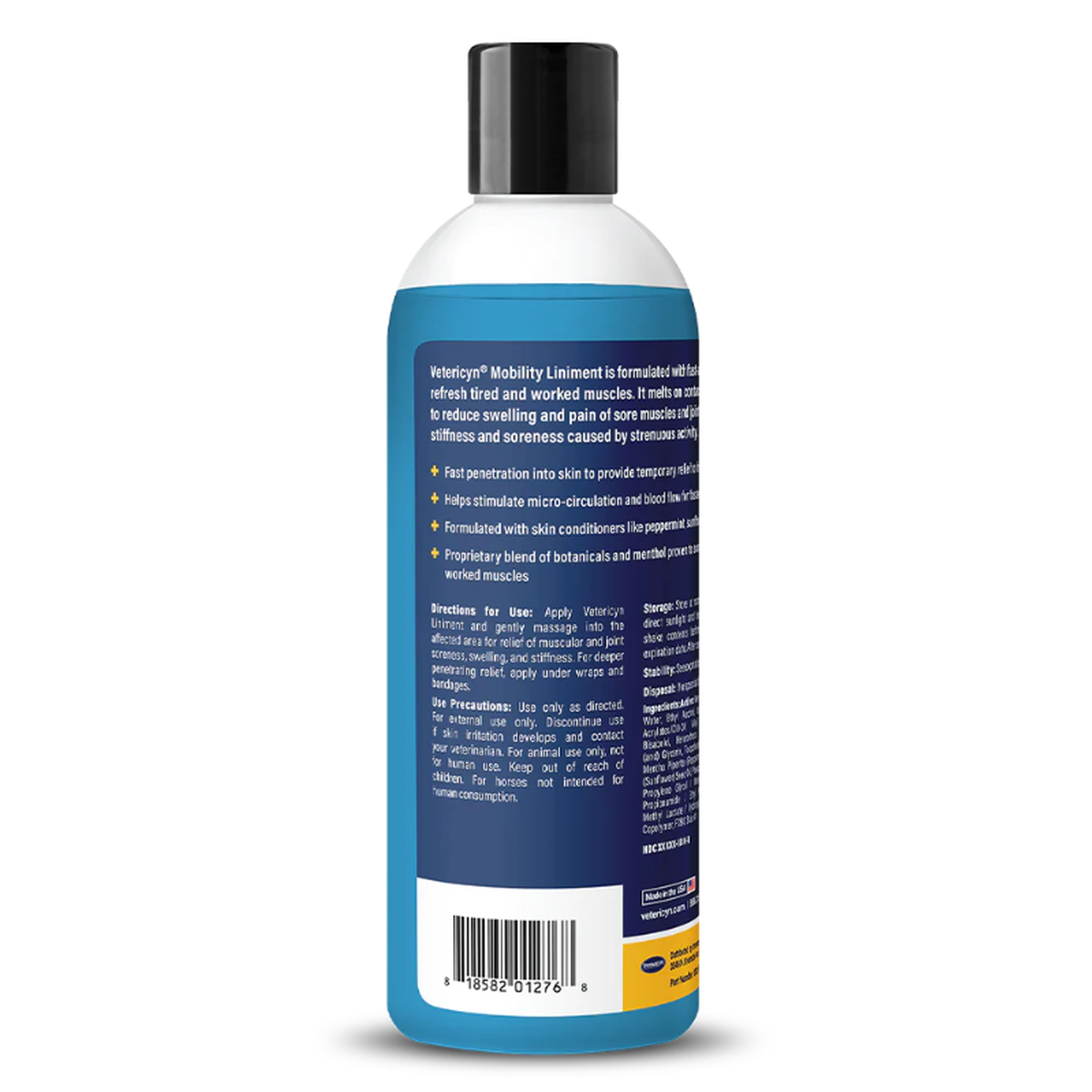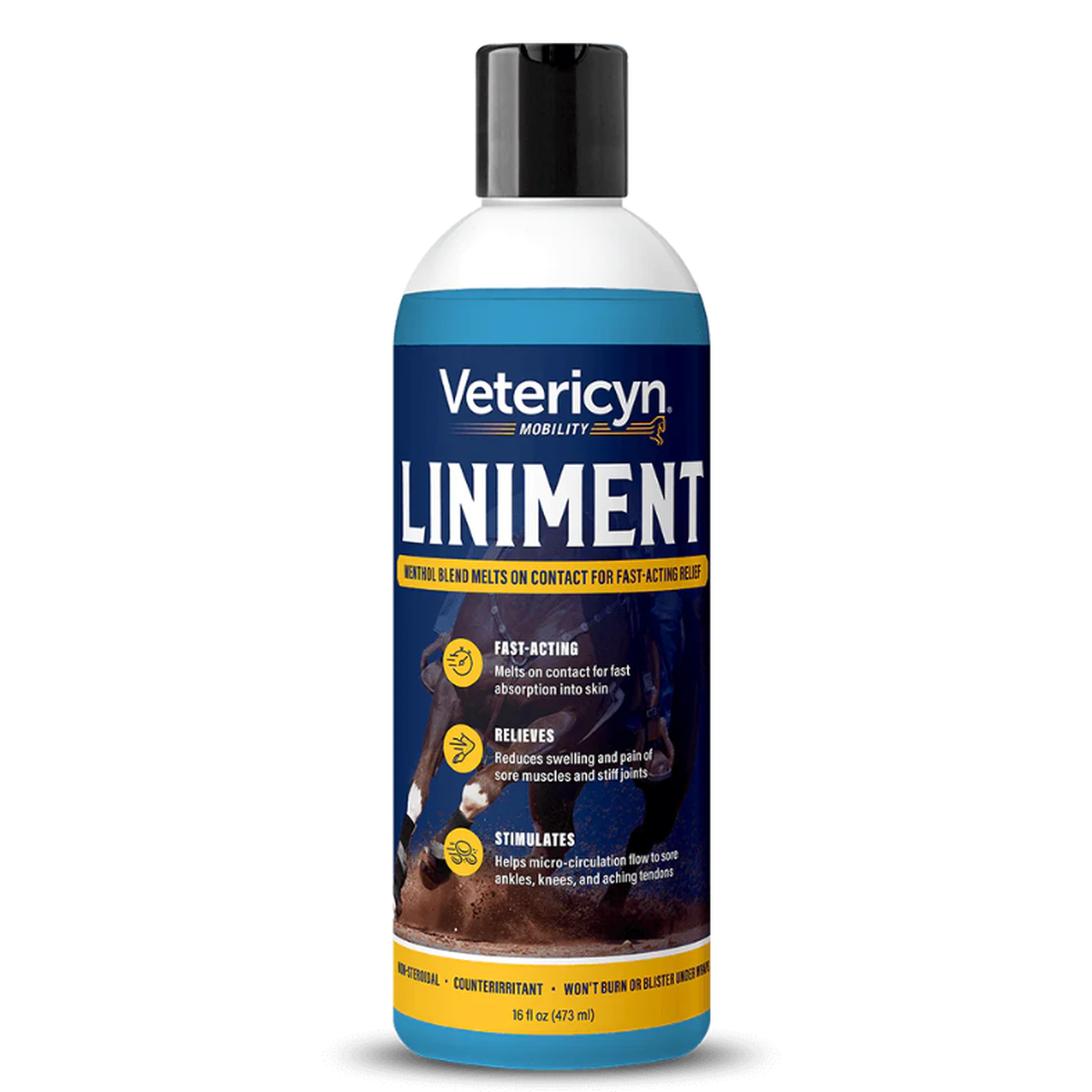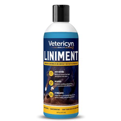 Vetericyn Equine Liniment is formulated with fast-acting ingredients to refresh tired and worked muscles. It melts on contact and works quickly to reduce swelling and pain of sore muscles and joints, helping to relieve stiffness and soreness caused by strenuous activity.