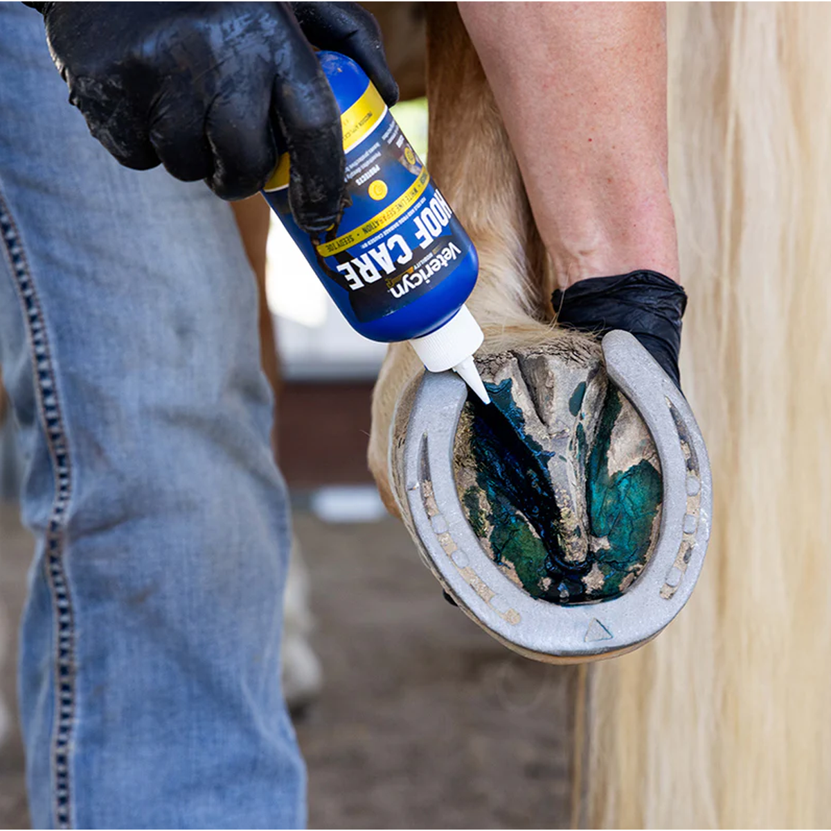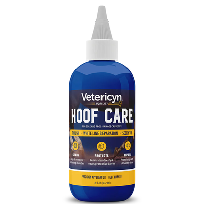 Vetericyn Hoof Care is designed to manage thrush, white line, and seedy toe in hooves. It purges & removes pathogens that cause hoof disease. Hoof Care also helps alleviate the buildup of harmful microorganisms on hooves that can cause odor and lameness. This unique formula effectively repairs hooves by penetrating deep into hoof layers and crevices to purge and remove pathogens that cause hoof deterioration and breakdown and promote the growth of healthy tissue.