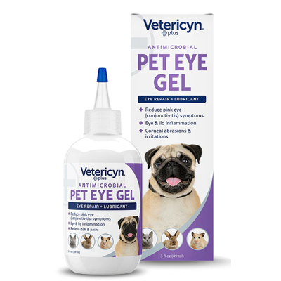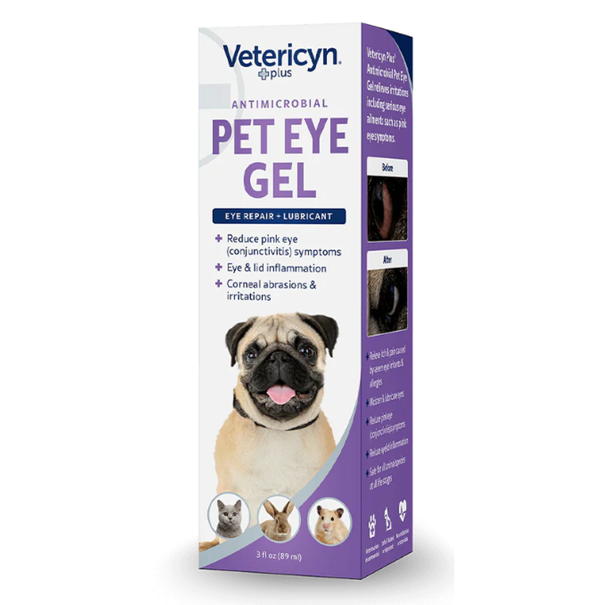 Vetericyn Plus Antimicrobial Pet Eye Gel helps provide relief to serious eye ailments without stinging or discomfort to your animal. Use it to relieve irritations, itch, and pain caused by allergies, scratched or inflamed corneas, and to reduce symptoms of pink eye.