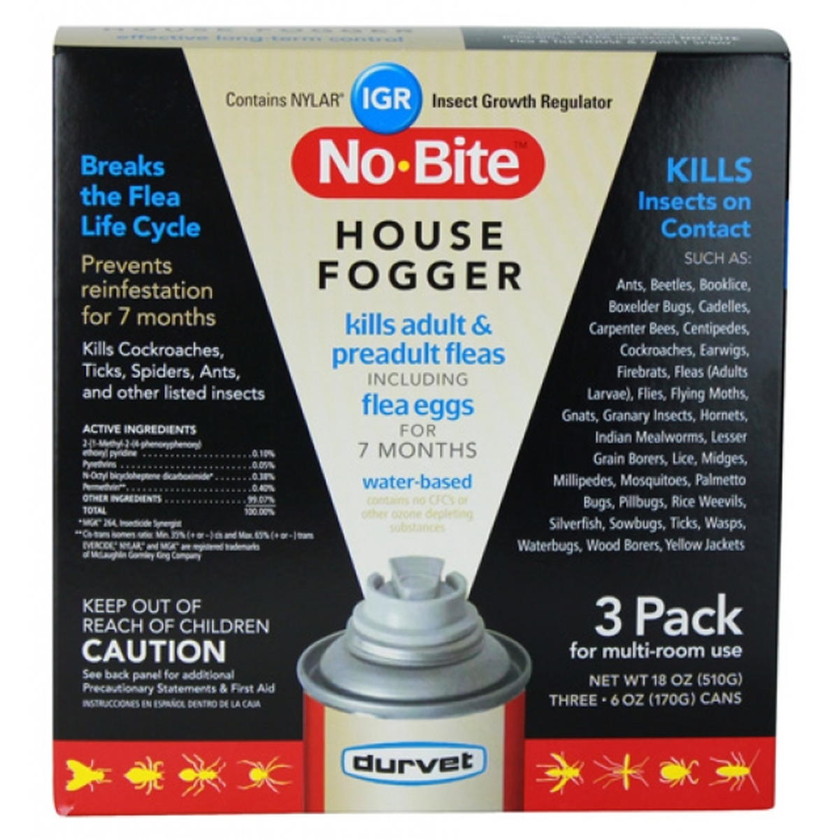 IGR No-Bite House Fogger 3 Pack provides effective long-term control and prevents reinfestation for 7 months.