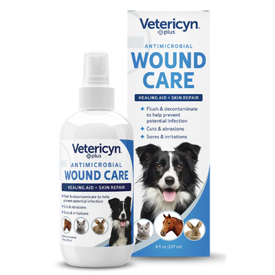 Vetericyn Plus Antimicrobial All Animal Wound Care Spray is a trusted solution designed to clean, treat, and help heal a variety of wounds while helping prevent infection. It clears debris and impurities from your pet's skin, creating an optimal environment to support fast, effective healing.