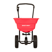 The rust proof 80lb capacity hopper and 10" deep lug wheels bring capacity and ease of use to the homeowner.