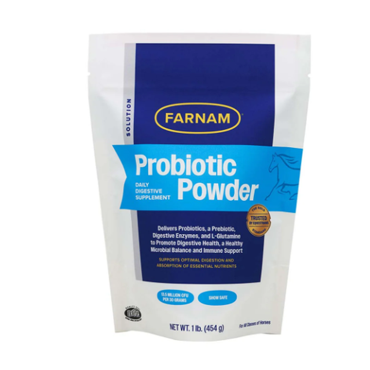 Farnam Probiotic Powder for Horses provides a daily source of beneficial intestinal bacteria, promoting a healthy microbial balance and maintaining digestive and intestinal health. This probiotic powder is ideal for horses and foals experiencing stress from environmental and dietary changes, deworming, antibiotic use, foaling, weaning, herd separation, rigorous performance demands, competitions, shows, or trailering. It supports ongoing digestive well-being and can be fed year-round as part of your horse's daily regimen for continuous support.
