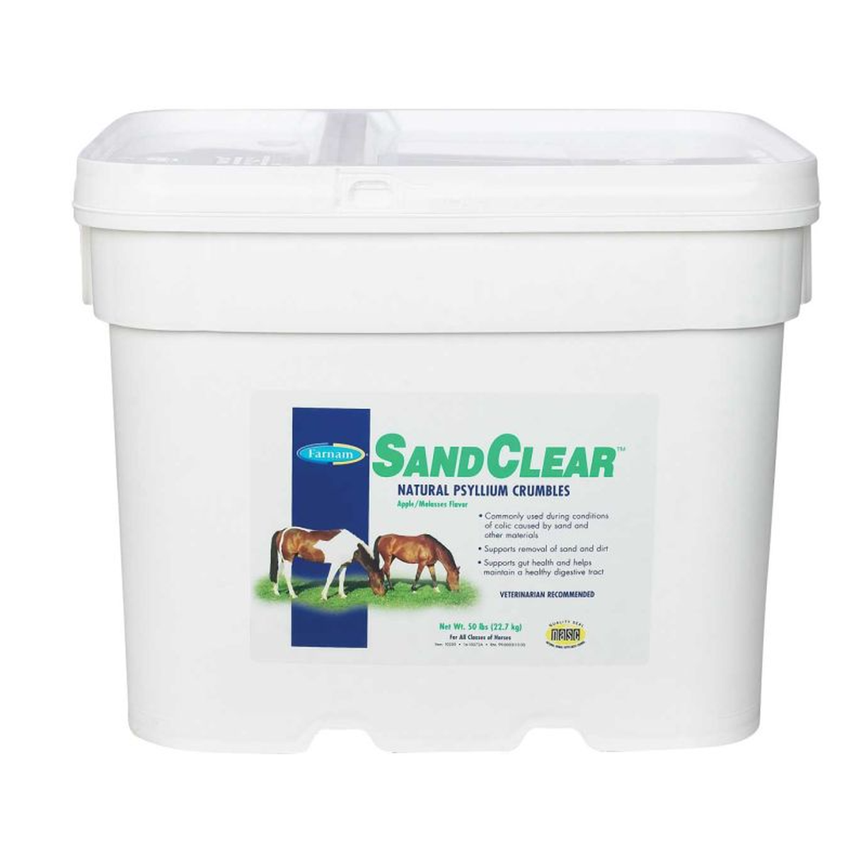 SandClear can help reduce the risk of digestive colic. Commonly used during conditions of equine colic caused by sand and other materials, SandClear crumbles contains psyllium seed husk recommended by veterinarians to support the removal of sand and dirt from the ventral colon. This supplementary source of dietary fiber is ideal for horses that graze or eat off the ground. The palatable apple and molasses crumbles can be given to horses of all ages- even young foals.