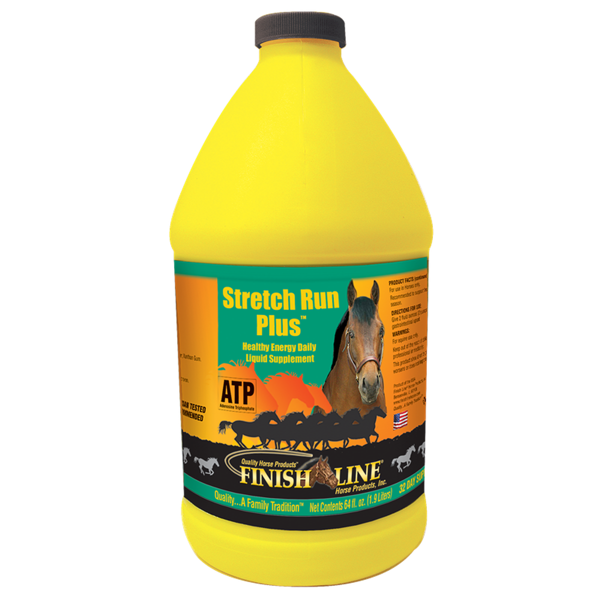 Daily liquid supplement recommended to support healthy metabolic muscle functions in the horse during training/competition season.