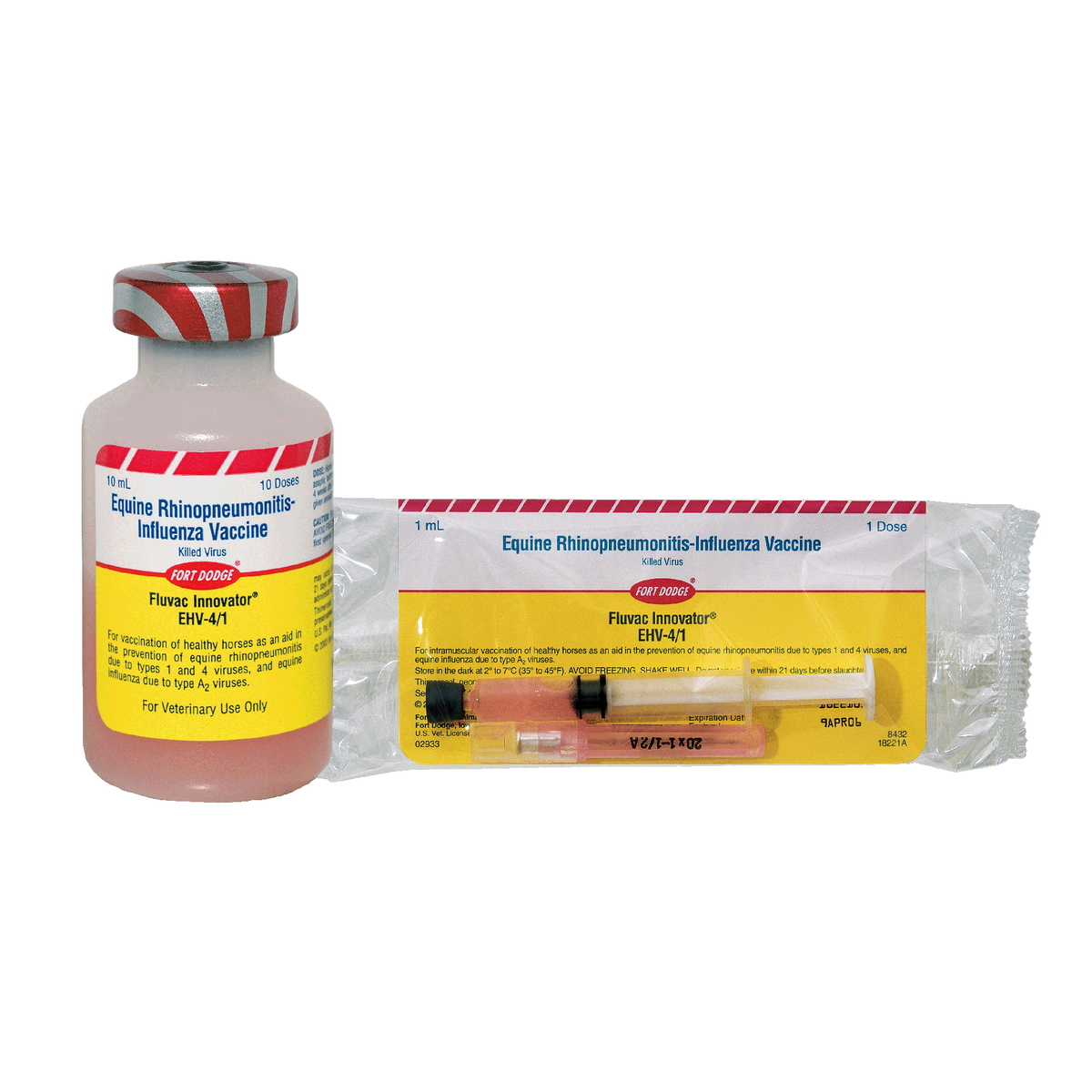 For vaccination of healthy horses as an aid in the prevention of equine rhinopneumonitis due to types 1 and 4 viruses, and equine influenza due to types A1 and A2 viruses.