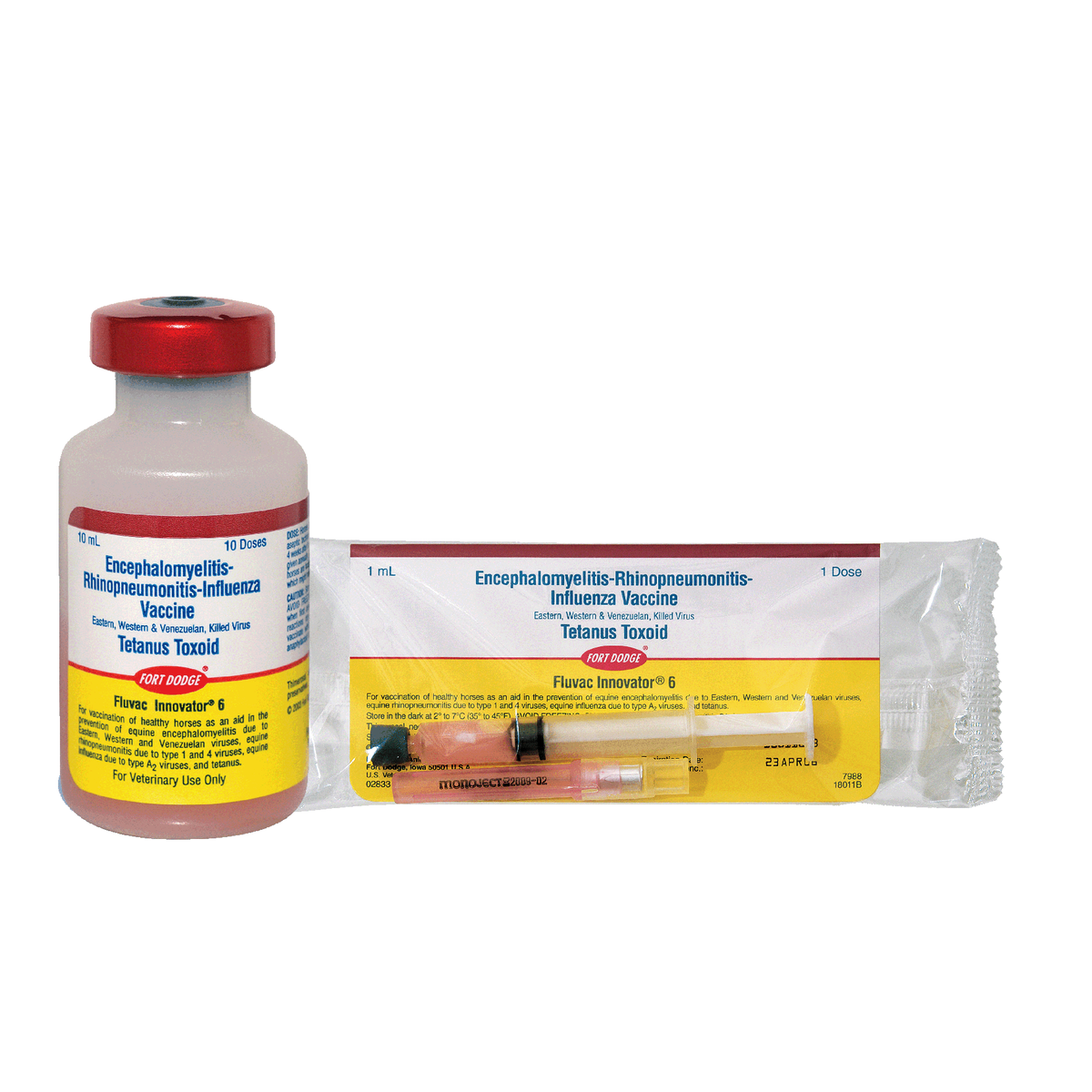 For vaccination of healthy horses against equine encephalomyelitis due to Eastern, Western and Venezuelan viruses, equine rhinopneumonitis due to type 1 and 4 viruses, equine influenza due to types A1 and A2 viruses and tetanus.