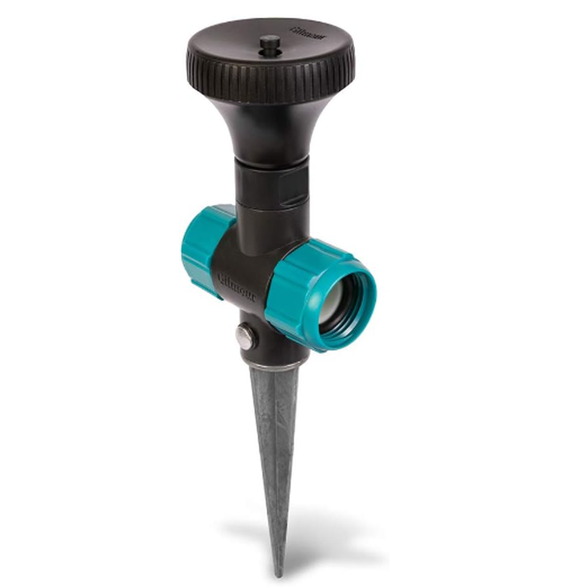 The Gilmour Adjustable Spot Sprinkler with Spike Base is ideal for watering planters, new trees, garden beds and trouble spots on the yard