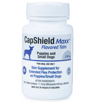 Skin Supplement for Extended Flea Protection. CapShield Maxx is a combination of Nitenpyram and Lufenuron. Lufenuron is a growth inhibitor (IGR) that will stay in the bloodstream for about 30 days. Any new fleas that get on the dog after the first day and take a blood feed will not fully reproduce. Capshield Maxx is the only way to introduce a long term IGR into the animal's environment as sun breaks down IGR in yard sprays within a day