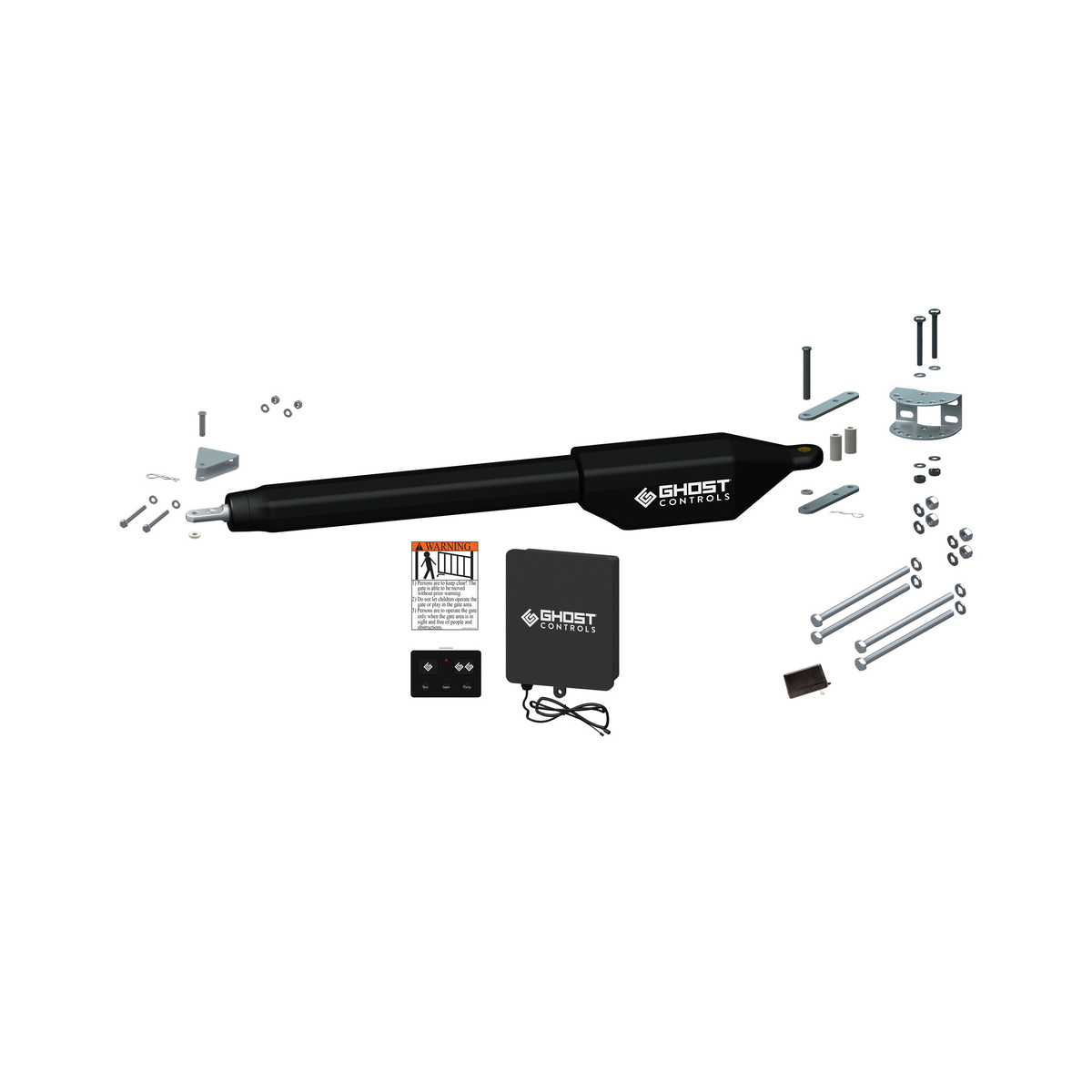 This GHOST CONTROLS Automatic Gate Opener Kit for single gates is the ultimate solution for do-it-yourself installation on a column mounted or heavy decorative vehicle entry gate. The kit comes complete with all of the parts you need to install this kit onto a wood or steel post.